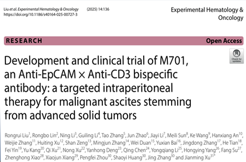 GA黄金甲动态M701治疗上皮性实体瘤引发的恶性腹水Ⅱ期临床成果登《EHO》,无穿刺生存期显著延长